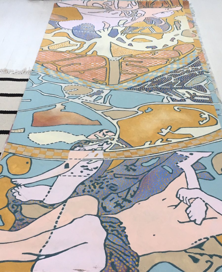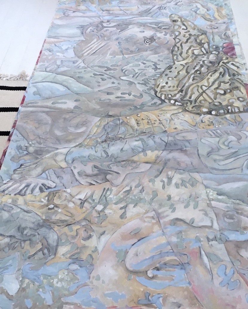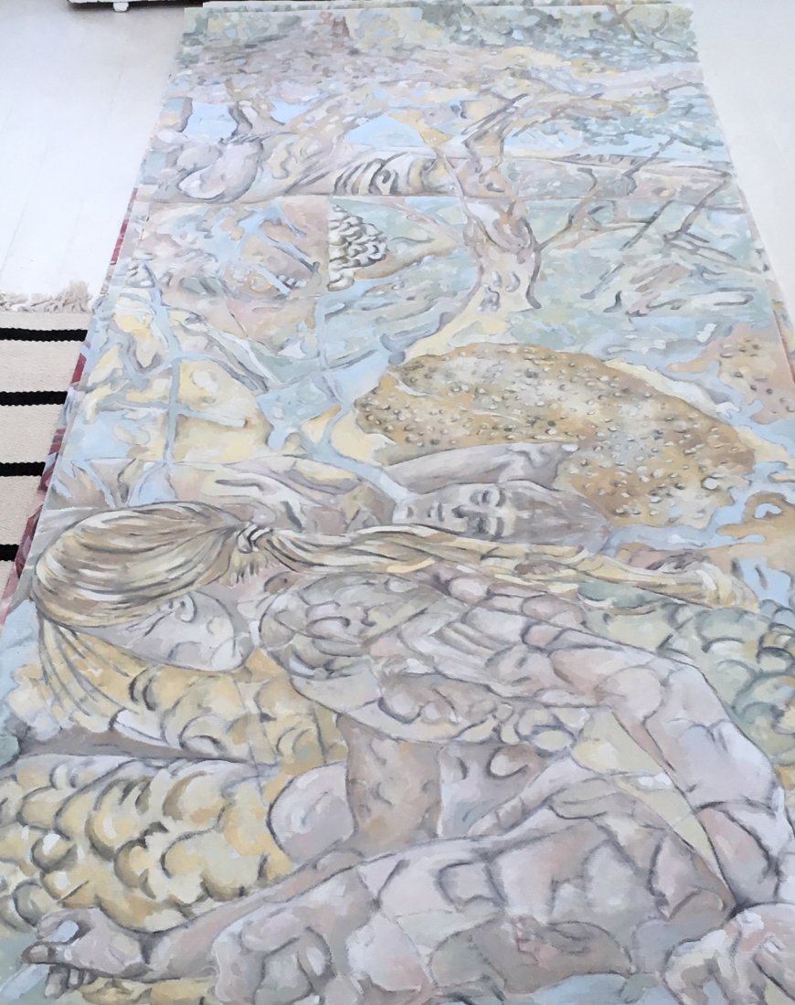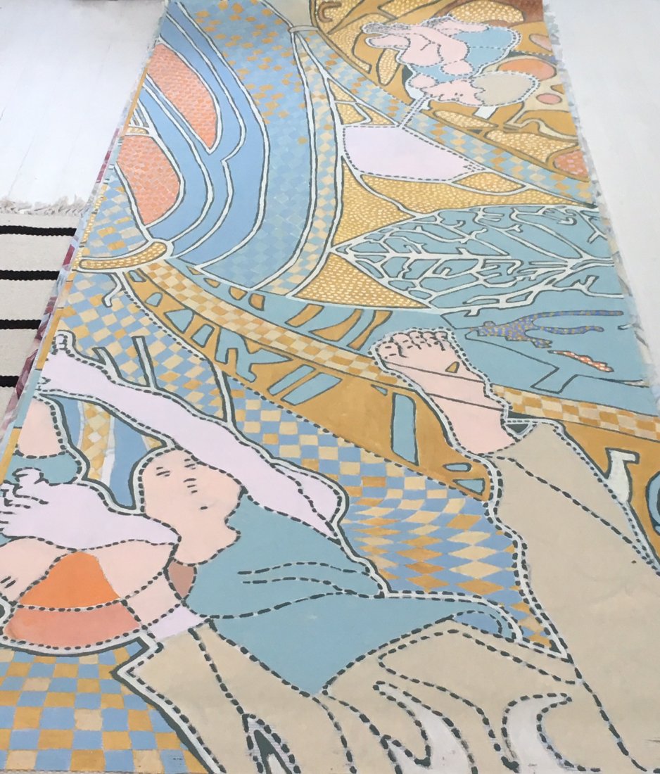showed the sketches and made this tempera on canvas in light colors