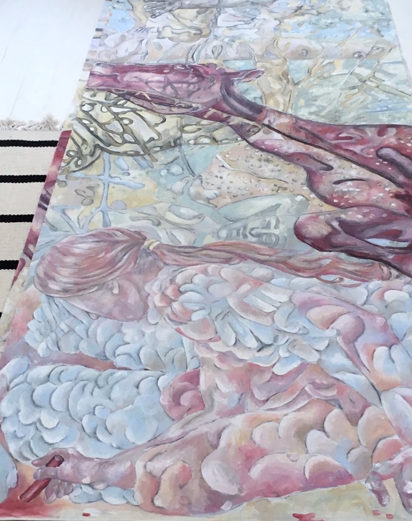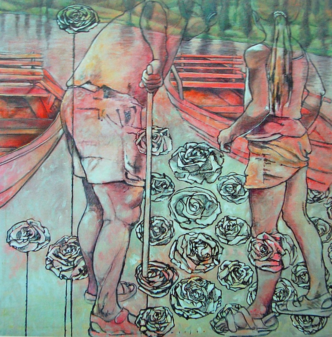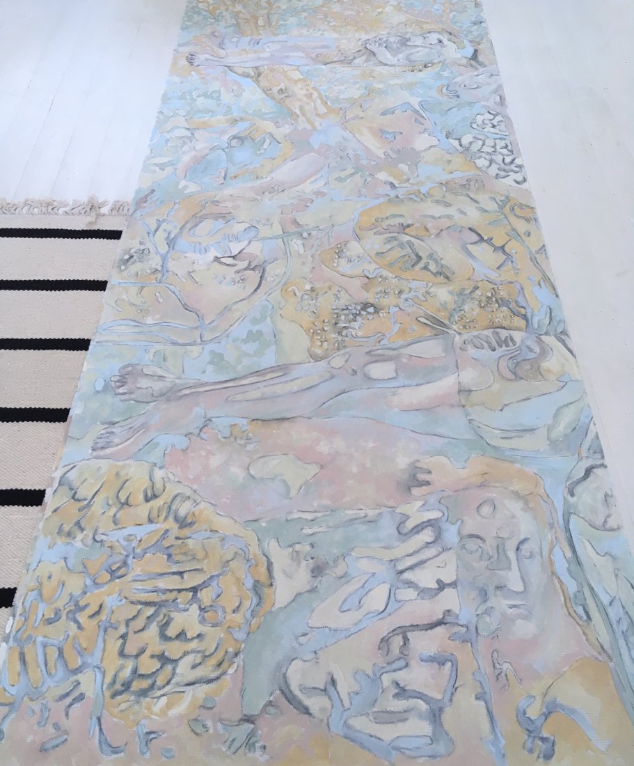 showed the sketches and made this tempera on canvas in light colors
