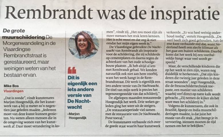 the social function of this wall-painting , almost 20 years after making it , even people have moved and new inhabitants are in the houses on the other side of the street , they feel it as there own